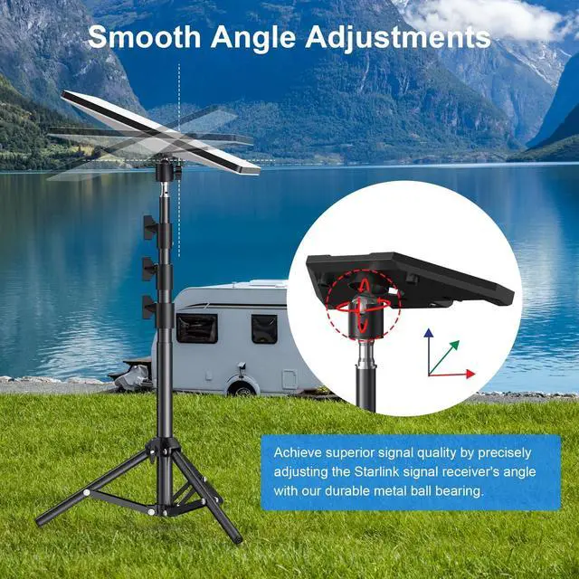 ^^ Sturdy and Weather-Resistant: The Starlink mini telescoping pole mount's three-leg design provides exceptional stability and load-bearing strength. Constructed from premium materials, it withstands harsh weather conditions and resists damage, ensuring reliable performance and durability in any environment.