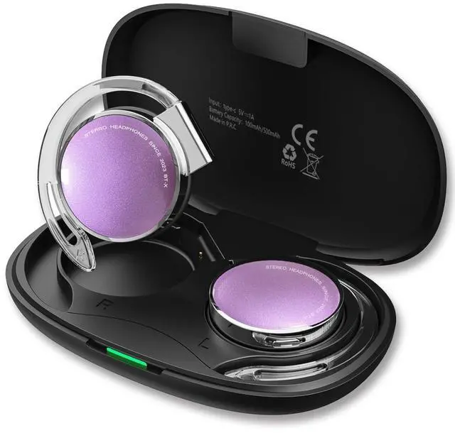 There is a power indicator on the closing opening of the charging case, it is easy to know the remaining power capacity of the charging case. The charging case supports USB C charging, just plug in the USB C cable (included) to charge the case. ^^ ComfortableThe small on ear bluetooth headphones with earhooks are designed with sponge earmuffs, which are comfortable, do not compress the ears, and do not feel pain in the ears due to long-term wearing.