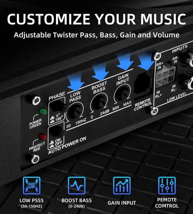 This underseat subwoofer with built-in amp integrates perfectly into any system. Adjustable gain, bass boost, and low-pass filter let you fine-tune your sound. Ideal as a car subwoofer amp combo, sub and amp combo, or complete subwoofer kit upgrade. ^^ CAST ALUMINUM SLIM DESIGN WITH SUPERIOR COOLING