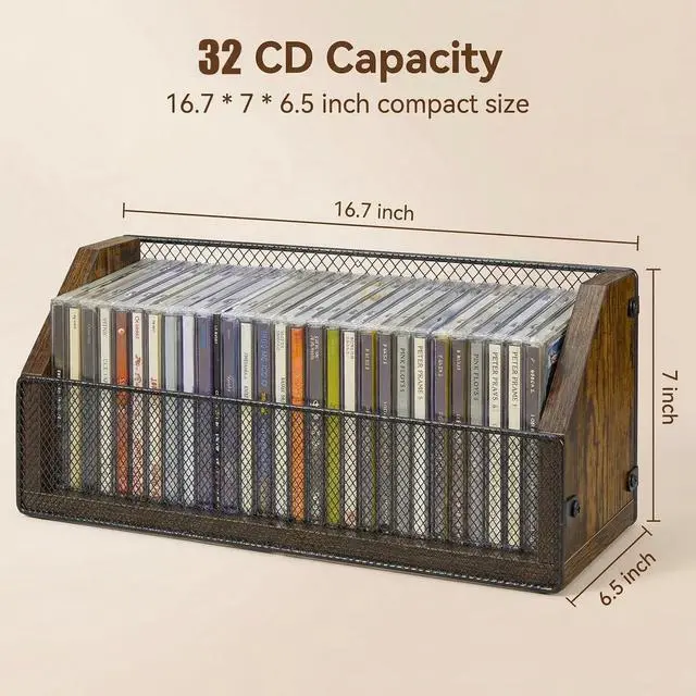 SLEEK DESKTOP DESIGN: With its clean lines and warm wood finish, this CD rack adds a touch of elegance to any space whether on a desk, shelf, or entertainment center. It's not just storage; it's a stylish addition to your home or office ^^ HOLDS 32