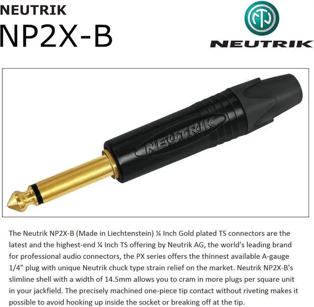 These high-value, high-quality cables will not break your bank and the integrity of your creative process. With WBC-PRO you are buying a product made with love and the utmost care for quality. WBC-PRO, the only cable you will ever need! ^^ The brand of connector used for this cable assembly: Neutrik NP2RX-B and NP2X-B are the latest & the highest-end inch Gold-plated Right Angled and Straight TS offering by Neutrik AG- Liechtenstein, the world's leading brand for professional audio connectors. Sports a slimmer shell & a precisely machined one-piece tip. These plugs also offer greater reliability, improved contact integrity and reduced cable strain. ^^ All our cables are professionally soldered using WORLDS BEST CABLES proprietary 4% silver solder blend & a nitrogen-assisted soldering process unique to us, exceeding industry standards, improves integrity of solder joints over traditional methods. ^^ These cables are lovingly assembled by WORLDS BEST CABLES, we offer the largest array of custom-built cables in the market, we carry all the major cable and connector brands. We have served millions of customers with quality assemblies for many years - this sale is for a single 3 Foot long cable.