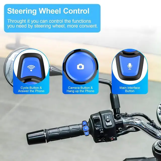 ^^ IP67 Waterproof Carplay: IP67 Waterproof design, allow you to ride in the rain or scorching sun. Our motorcycle carplay screen can still be used normally, no need to worry about all kinds of weather! is bright and clear, even under direct sunlight, and touch response is fast. The IP67 waterproofing worked flawlessly when you ride in bad weather. ^^ 6.25 '' Motorcycle Carplay TouchcreenThe carplay for motorcycle can be attached to any area of the handlebars as you want. The 6.25 '' carplay screen is bright, clear, and easy to read even when the sun is shining directly on it. Our motorcycle android auto lightweight, has a slim design, the carplay adapter isnt of a distracting size. The touch controls respond smoothly, and you can actually use it with your gloves on. ^^ Makes your rides saferYou can use voice commands to make calls, play songs, GPS navigation, or check maps without ever touching your phone. The motorcycle dash cam carplay keeps your focus on the road and your hands where they should be. The motorcycle GPS navigation mades your rides more safer and more convenient at the same time.