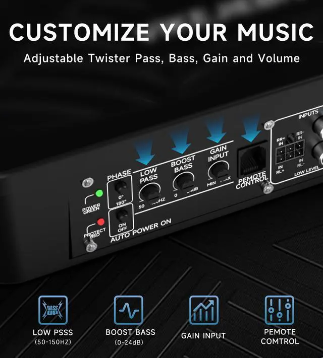 It is made of cast aluminum which has better cooling characteristics, the monster structure conforms to air cavity theory, more effective air resonance, and sound transmission. The subwoofer and amp package play with loud highs, clear mids, and deep, powerful bass, ensuring clear and dynamic audio performance. ^^ [Easy Set Up]--The Powered subwoofers dimensions are 13.58L * 10.23W * 2.76H inches which are super slim and can fit in the car under the seat or settle in a car trunk. The screws are also included in the package to better prevent bumps which can fit more types of vehicle such as SUV/Jeep/MVP/Truck/Pickup, etc ^^ [Customize Your Music]--The Subwoofer car has individual adjusting twisters that can adjust the