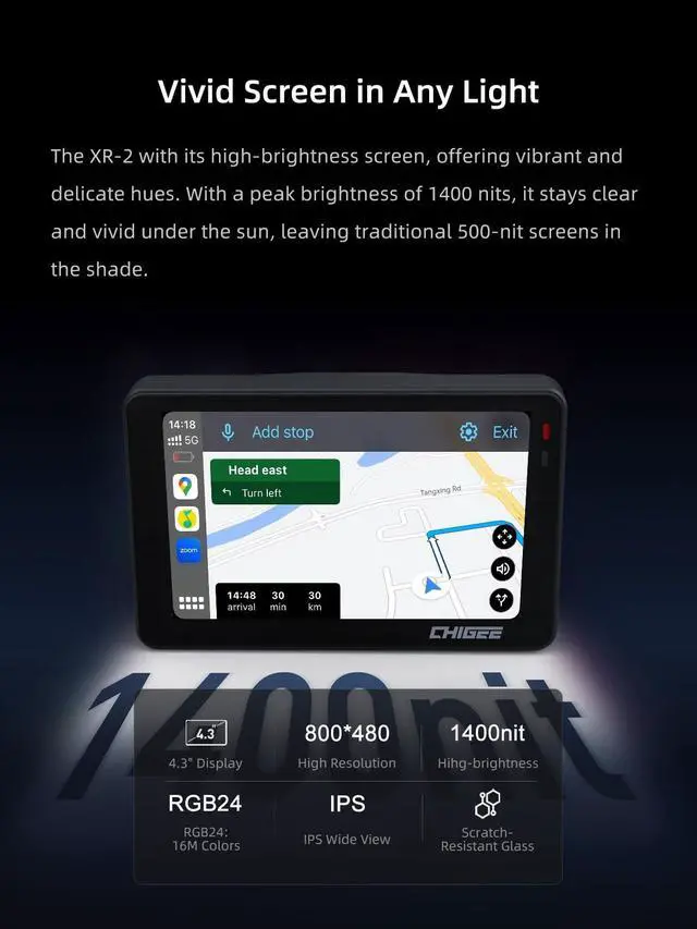 Display: Unlike the AIO-5 Lite's larger 5-inch screen, the XR-2 features a more compact 4.3 -inch display, perfect for users who prefer a streamlined, easy-to-read interface. With up to 1400 nits of brightness, its easily visible even under direct sunlight.