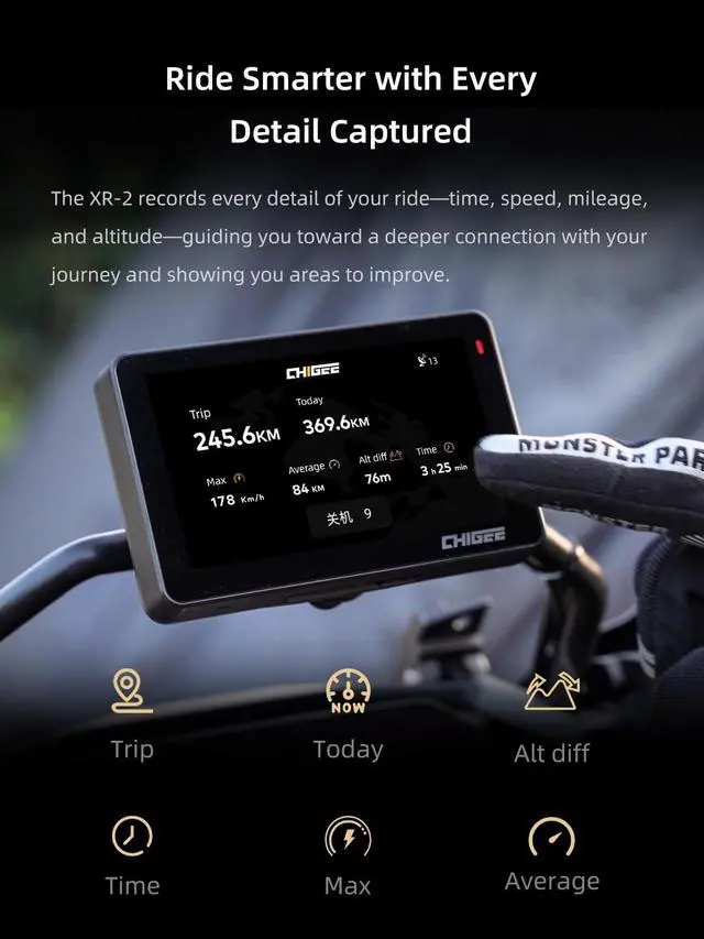 Smooth Video: the XR-2 provides both 30FPS recording. Capture your journeys with higher frame rates for ultra-smooth footage, perfect for documenting key moments on long rides. ^^ Compact 4.3 -Inch
