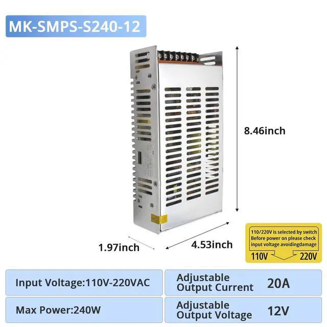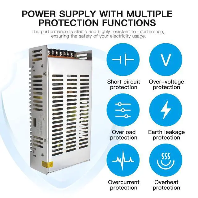 ^^ Efficient Heat Dissipation: The switching power supply is equipped with a thickened aluminum alloy casing and mesh-shaped heat dissipation holes, which can enhance the heat dissipation efficiency of the power supply and effectively extend the service life of the product.