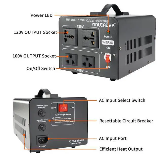 Voltage transformer 120V to 100VIt converts 120V supply voltage in the U. S., Canada and Mexico to 100V for use in Japanese appliances; ^^ 1*120V & 1*100V SOCKET100V Socket for Japanese appliance & 120V Socket accept U. S., Canada and Mexico appliance. ^^ Multi-function2500 Watts is the maximum capacity of this transformer including the power surge. The Voltage Converter Transformer can be used with any kind of appliance or device up to 2000 watts, like hair dyer, rice cooker, toaster, kitchen appliances, vacuum neat electronics, audio equipment, etc.