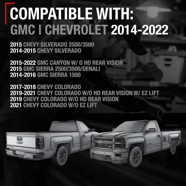 ^^ COMPATIBLE WITH: 2014-2022 Chevrolet Silverado Colorado; GMC Sierra Canyon, this backup safety camera is designed to integrate perfectly without modifications.