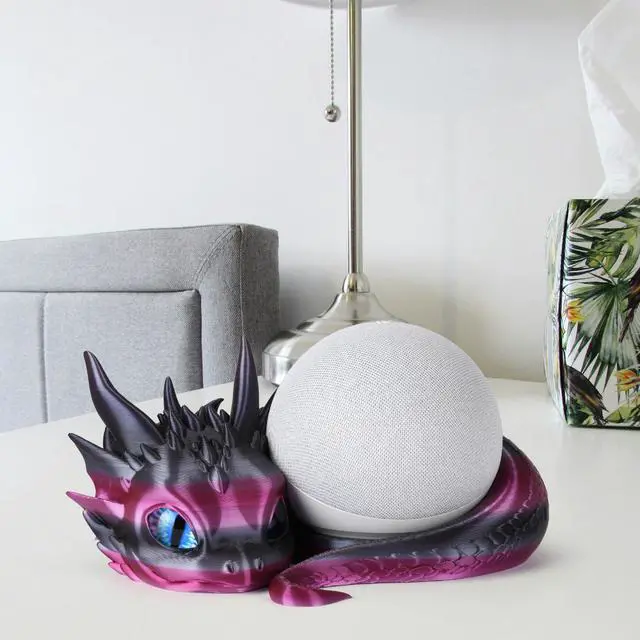 This dragon stand for Echo Dot 4th and 5th Gen, providing stable support while adding a touch of whimsy to your decor. Crafted using advanced 3D printing technology with high-quality PLA material, it showcases vibrant colors and a silky sheen. Each piece is meticulously assembled by artisans, with attention to every detail, making each dragon stand unique. Whether placed on your desk, bookshelf, or nightstand, this charming decoration will enhance the allure of your living space.