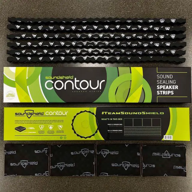 SOUNDSHIELD SSD-CONTOUR Speaker Sound Seal Strip Kit fits about 4-5 speakers ^^^^ SoundShield Contour Sound Sealing Speaker Strips are made of the same industry leading material that makes SoundShield the number one choice for installers everywhere. This kit includes speaker backing pads and our contour cut flex strips to fit a wider range of speaker housing sizes, ready to cut to size for easy install. This reduces sound spill, and balances the front and back waves for clearer sound. ^^^^ Features ^^^^ *