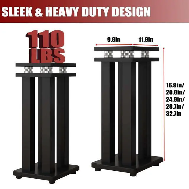 Not only can effectively avoid displacement due to accidental collision or slight vibration, but also to a great extent to reduce the noise generated by sliding, enjoy the atmosphere of wonderful music! ^^ Multiple sizes for your choiceThe dimensions of the sound rack are rich and varied, in which the pallet surface is 9.8 * 11.8 inch, and in terms of height, there are as many as 5 different sizes to choose from, which are 16.9 inch, 20.8 inch, 24.8 inch, 28.7 inch, and 32.6 inch. You can flexibly pick the most suitable size of the sound surface according to your actual needs and usage scenarios.