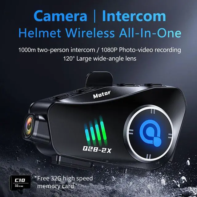 HD Motorcycle Camera: The BTQILEYOO Q28 Motorcycle Bluetooth Headset with 1080P Camera features an 1080P 120ultra-wide-angle lens. It captures clear and detailed high-definition videos at 30FPS and crisp 2MP images. You can record up to 6.5 h of footage and easily download photos and videos using WiFi. Plus, the helmet Bluetooth headset supports up to 256GB TF cards and comes with a complimentary 32GB TF card. ^^ CVC and