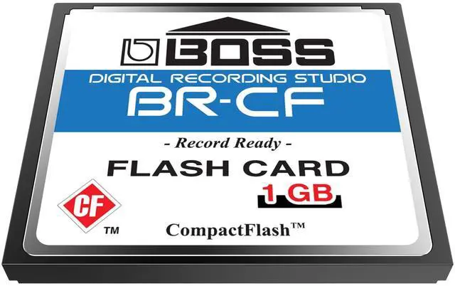 Official 1-Pack Premium Boss BR-CF 1GB Compact Flash Memory Card upgrade for the Boss Roland series of sampler drum pads and recording devices.