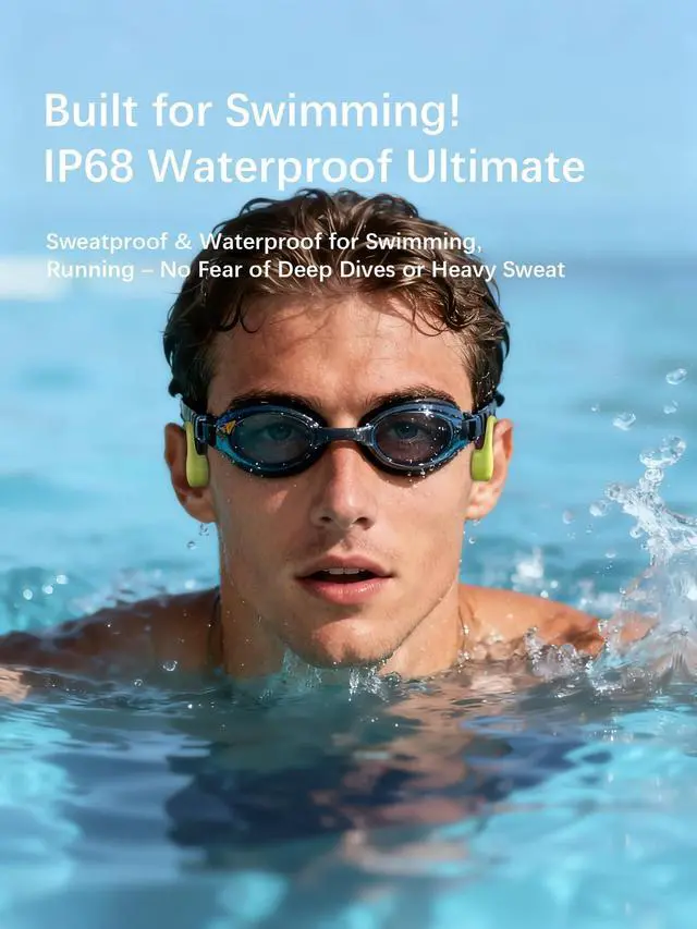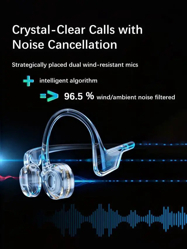 It defies every bounce, jump, and head turn, offering a stable, comfortable fit for even the most intense runs and rides. ^^ Wind & Ambient Noise Reduction - Strategically positioned dual wind-resistant microphones are engineered to target and filter out 96.5 % of wind roar and traffic hum. Enjoy crystal-clear calls and voice assistant commands, even when cycling at speed or running on windy days. ^^ All-Weather Sports Companion - With an IP68 waterproof rating, these headphones defy sweat, rain, and even complete submersion. Perfect for pushing your limits in any weather, they are your reliable partner for every run, ride, or swim.