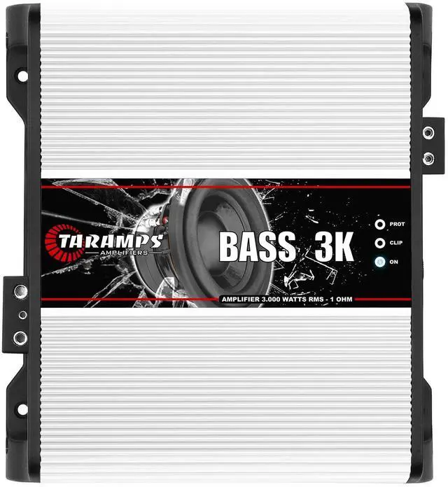 The Taramps Bass Line amplifiers offer outstanding power and efficiency for subwoofers, enhancing sub-bass and bass frequencies with superior performance. ^^ The Bass 3k monoblock amplifier delivers 3000 Watts RMS at 1 Ohm and offers precise bass control with its Subsonic Filter, volume, and Low Pass features. ^^ Taramps BASS 3000 at 1 Ohm,