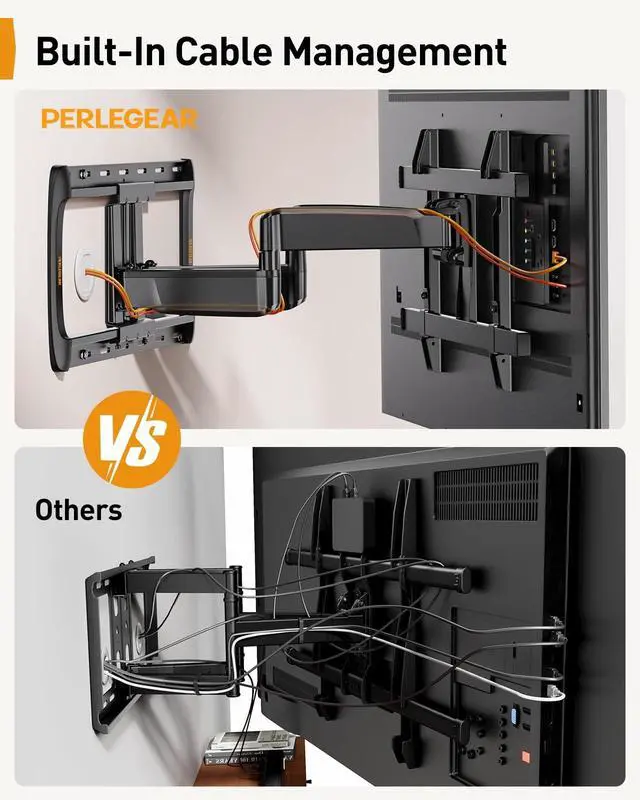 Effortless Installation: Our full motion TV bracket features built-in cable management to keep cables organized & neat. Its easy to install with detailed instructions, a complete hardware kit, a drilling template, and a bubble level. For any questions, feel free to contact our US-based support team.