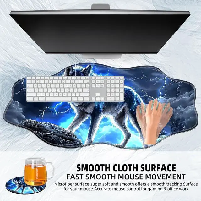 & RubberKey Features: Our Large Gaming Mouse Pad measures 35.4 x 15.75 inches, providing ample space for both your gaming mouse and keyboard, perfect for a seamless gaming or work experience. Versatile Use, This extended Desktop Mouse Pad serves multiple purposes, ideal as a gaming mouse pad, keyboard mouse mat, or desk mouse pad extra large for home or office use, meeting all your workspace needs. This mouse pad also comes with coaster for easy placement of desktop cupsHigh-Quality Materials, Crafted from premium polyester, the surface ensures smooth gliding for your mouse, while the anti-slip rubber base keeps the mouse pad securely in place during intense gaming sessions. Durable Construction, Featuring stitched edges, our mouse pad gaming is designed to prevent fraying and wear, ensuring it maintains its shape and performance even after prolonged use. Stylish Aesthetics, With exquisite prints, this mouse pad not only enhances your gaming setup but also adds a touch of style to your desk, making it a functional yet fashionable addition to your workspace.