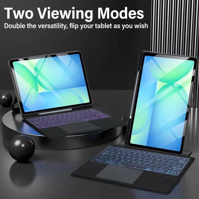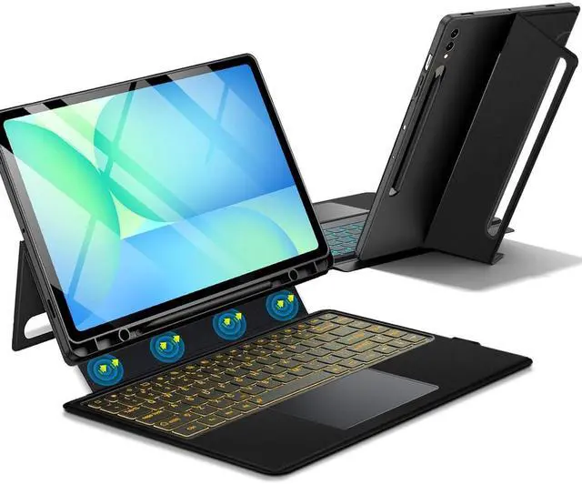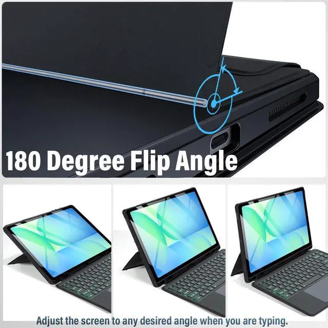 Magnetic Split DesignSupport 4 Stand Positions, multi-angle, multiple options. Landscape and floating mode support office and web browsing, portrait mode,including a flexible kickstand that provides multiple tilt angles to perfectly align with your tasks. Whether you're working, watching movies, or browsing the web, you can find the ideal viewing angle.