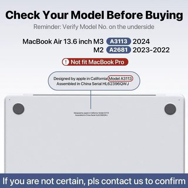 Check Your Model: Designed ONLY to be compatible with MacBook Air 13.6 inch 2026-2022 M5 M4 M3 M2 Chip with Liquid Retina Display & Touch ID (Model: A3449 / A3240 / A3113 / A2681).