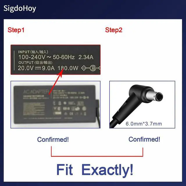 SigdoHoy 180W Charger Compatible with Asus Rog Zephyrus G14 GA401 G15 GA502,Tuf Gaming F15 F17 A15 A17 FX505, Zenbook Pro 14 Duo Laptop