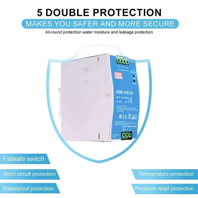 ^^ Built-in Safety: Rest assured with comprehensive protection. This power supply is UL508 listed and compliant with EN61000-6-2 for industrial environments, featuring short circuit, overload, over voltage, and over temperature safeguards.