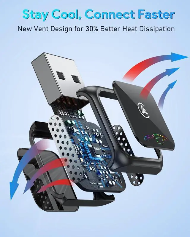 Lightning-Fast 5.8GHz Connection & No LatencyEquipped with 5.8GHz WiFi, Bluetooth 5.3, and an 8-core chip, this adapter connects in 3 seconds after initial pairing3x faster than competitors. Enjoy zero-lag performance for navigation, Waze, and media streaming, with auto-reconnect every time you start the car. The advanced chipset ensures stable transmission without dropouts, making it perfect for hands-free driving.