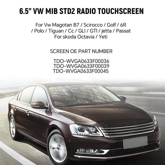 Compatible With: 6.5" touch screen replacement for VW, for Tiguan, for CC, for GLI, for GTI, for Jetta, for Passat, for Magotan B7, for Scirocco, for Golf 6R, for Polo, etc. which MIB STD2 screen diagonal size is 6.5 inches ^^ What Can Be Solved?: Touch screen replacement can fix touch command response, dents, scratches, cracks, fading, dead pixels, screen blurring and more ^^