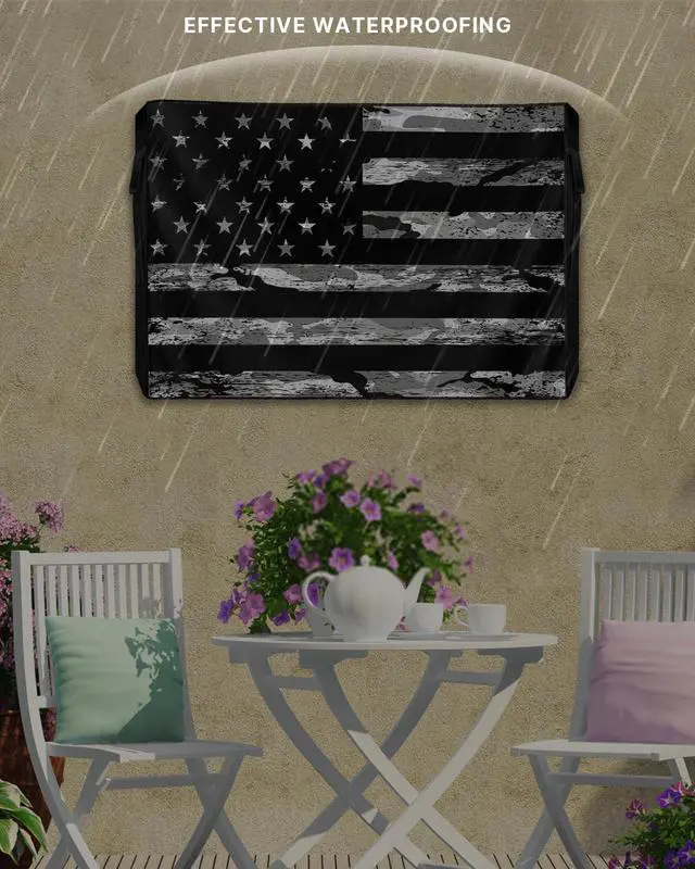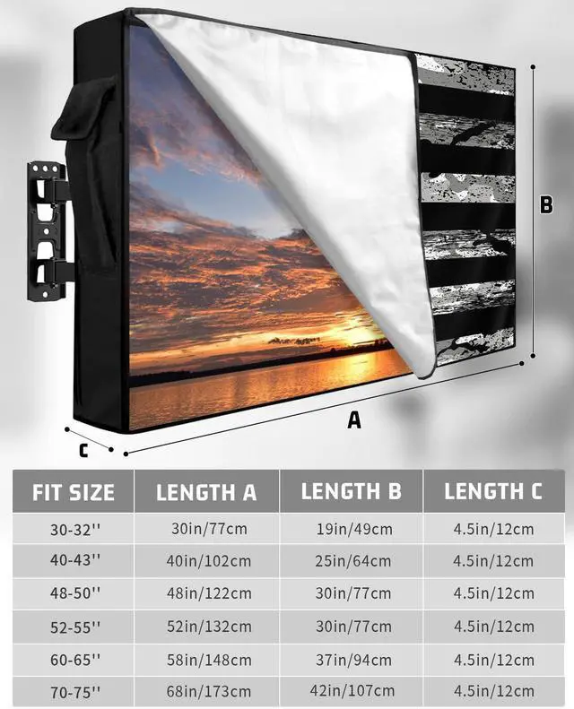 Cloth: The American flag outdoor TV covers enclosure crafted from premium 600D oxford cloth, our TV enclosure offers exceptional durability to external damage and scratches. The inner PVC coating is soft, won't scratch your screen, thicker and better waterproof, TV screen protector block UV rays and tear-proof property ensures long-lasting sturdiness even in harsh environments, dust-proof and weatherproof design guarantees year-round protection for your valuable television.