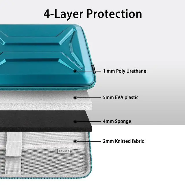 Hard shell for laptop safetyCrafted from high-density EVA, the 14 inch laptop case hard shell resists pressure, impact and scratches, ensuring lasting durability. Unlike ordinary nylon sleeves, it delivers true hard-core security and provides extra peace of mind on the go. ^^ Dual compartments for practical storageDesigned with a 90 opening, the hard laptop case includes a dedicated laptop compartment with a secure strap, as well as a zippered accessory pocket for chargers, mouse, cables, USB drives and more. Everything stays neat, organized and securely in place.