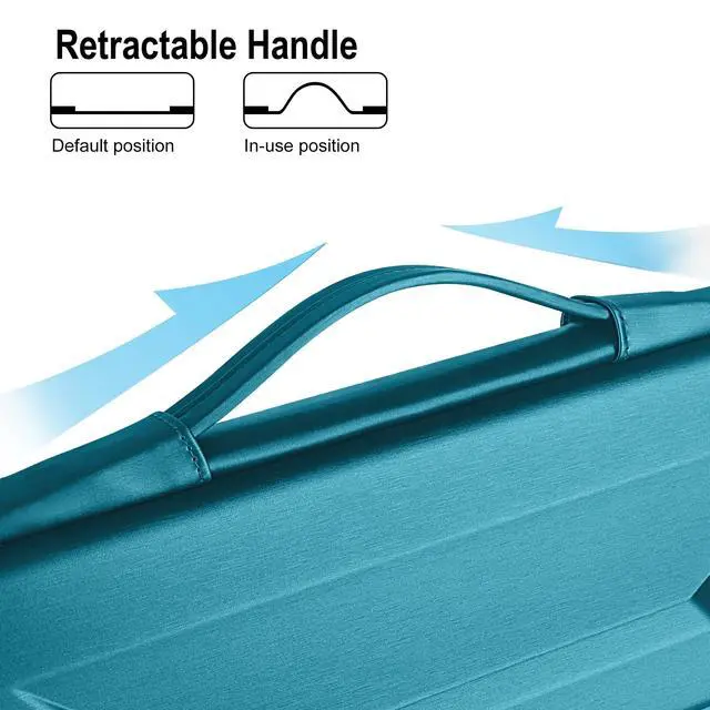 ^^ Water resistant for worry-free travelThe laptop hard shell cover case is naturally water resistant, effectively blocking rain, coffee or accidental spills to protect your laptop from moisture damage. Whether commuting, traveling or working on the move, you can always carry your device with confidence. ^^ Sleek Design with Flexible Carry OptionsWith a sleek X-shaped geometric design, the computer case for laptop balances modern style with practicality. The retractable handle allows you to carry it comfortably by hand when needed, and tuck it away for easy storage in your suitcase.