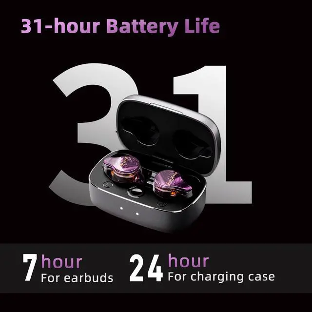 Studio-Level Triple Driver Sound System Each earbud features a 10mm titanium-coated dynamic driver, custom high-frequency balanced armature, and ultra-high-frequency ceramic planar driver for incredibly detailed audio across a wide 20Hz20kHz frequency range. ^^ Lightweight & Ergonomic Comfort Design Handcrafted with premium resin molding technology, these earbuds are 30% smaller than typical wireless earbuds and weigh only 5.8 g per sideproviding a secure, comfortable, and fatigue-free wearing experience. ^^ 30dB Passive Noise Isolation Technology The patented ear cavity structure offers excellent passive noise isolation comparable to 30dB active noise cancellation, effectively reducing external noise without consuming extra power.