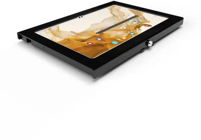 Material: Aluminum, Dimension: 200mm (Height) x 30mm (Depth) x 290mm (Width), Weight: 1.5 lb ^^ Used as Time Clock, POS, Kiosk, Store Display, Trade Show display ^^ Total Screen Access For Full Touch Function, Install In Seconds! One Push Button Lock, Anti-theft security design ^^ Wall Mount Ready! Supports VESA mounting kit with 75mm/100mm standard for both Landscape and Portrait Display Modes
