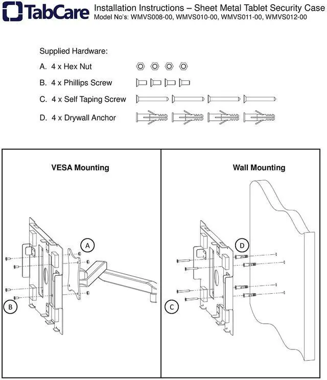 VESA 75x75mm 100x100mm Standard, Compatible with Samsung Galaxy TAB A9+ 11" A11+ (NOT for TAB A9 8.7" ) ^^ Mad in USA;