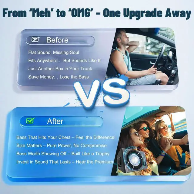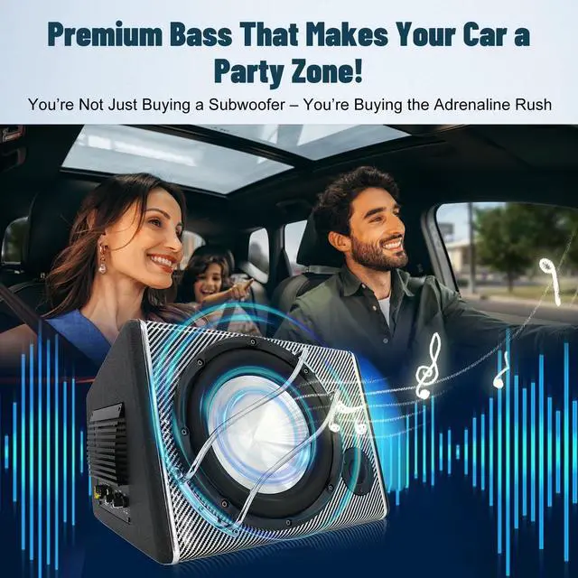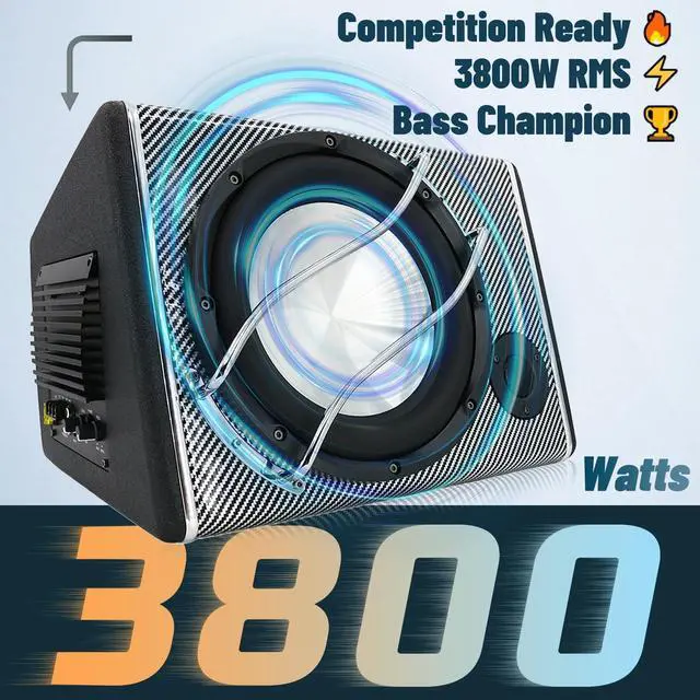 3800W Peak Power - Earth-Shaking Bass Experience explosive, deep bass with 3800W max power Advanced acoustic technology delivers rich, distortion-free low frequencies Perfect for hip-hop, EDM, rock, and all bass-heavy music Transforms your car into a concert-like soundstage ^^ Full-Range Bass Adjustment - Customize Your Sound Adjustable bass boost lets you fine-tune intensity & frequency Tailor the bass to match your music stylefrom punchy beats to smooth lows Precision control knob for real-time sound customization Enhances every genre, from thumping rap to crisp classical ^^ Compact & Space-Saving Design 10-inch slim profile fits easily in trunks without sacrificing space Sleek, modern look complements any car interior Lightweight yet durable construction for long-lasting performance ^^ Easy Plug-and-Play Installation Includes high-quality audio cable for hassle-free setup No professional help neededfollow the simple guide for quick installation Works with most factory & aftermarket car stereos ^^ Premium Build - Reliable & Durable High-grade materials resist heat & vibration damage Stable performance in all driving conditions 1-year warranty for worry-free purchase