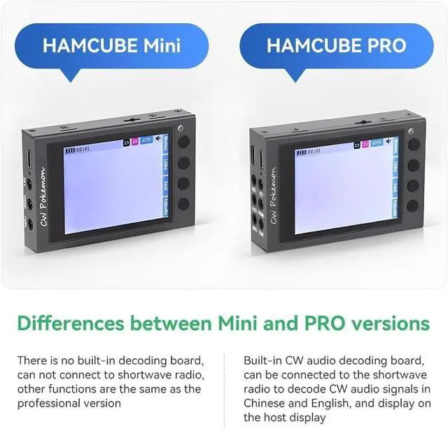 The difference between the professional version and the mini version: the professional version has a built-in CW audio decoder board, which can be connected to shortwave radio stations to decode CWs Chinese and English audio signals and display them on the host screen. The mini version does not have a built-in decoder board and cannot be connected to shortwave radio. Other functions are the same as the professional version