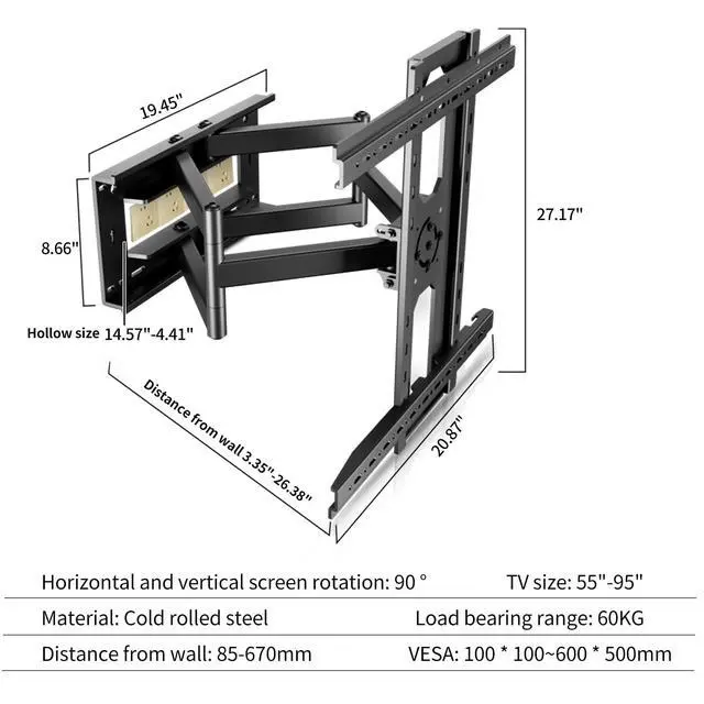 Full Motion More Comfortable: This TV wall mount can be adjusted to the comfortable angle according to your preferences. The TV wall mount can rotate left and right, and can rotate 90 horizontally and vertically. It can extend 26.37 inches and shrink to 3.34 inches to save space. Suitable for your work and life ^^