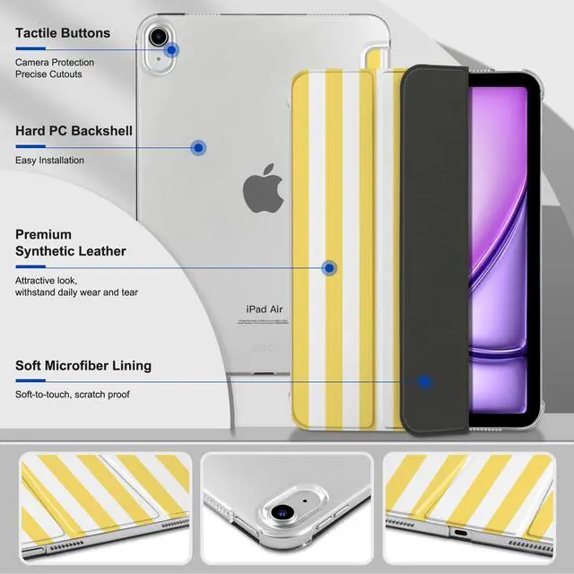 Compatibility Specifically designed for iPad Air 11-inch (M4) 2026 - Model # A3459, A3460, A3463; iPad Air 11-inch (M3) 2025 - Model # A3266, A3267, A3270; iPad Air 11-inch (M2) 2024 - Model # A2902, A2903, A2904; iPad Air 4th & 5th Gen 10.9 -inch (2020 / 2022) - Model # A2588, A2589, A2591, A2316, A2324, A2325, A2072. Not compatible with other iPad models. ^^ Auto Sleep/Wake Function -- Automatically puts your iPad to sleep when closed and wakes it up when opened, saving battery life.