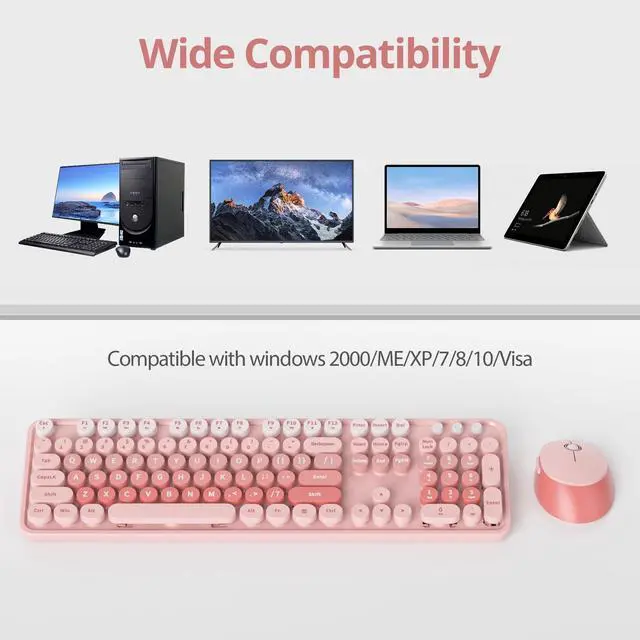 Comfortable Typing: The pink keyboard and mouse wireless provides a comfortable typing experience, allowing you to type for extended periods without discomfort. The well-spaced keys and ergonomic design ensure effortless and accurate typing, enhancing your productivity.