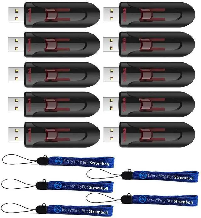 The SanDisk Glide USB 3.0 Flash Drive moves your files fast. Spend less time waiting to transfer files and enjoy high-speed USB 3.0 performance. With transfer speeds to drive up to 15 times faster than standard USB 2.0 drives, you can transfer a full length movie in less than 30 seconds. And with password protection, you can rest assured your private files stay private. Secure your files in style with the SanDisk Glide USB 3.0 Flash Drive. Bundle includes (10) 128GB SanDisk Cruzer Glide 3.0 USB Flash Drives and (5) Everything But Stromboli Lanyards.