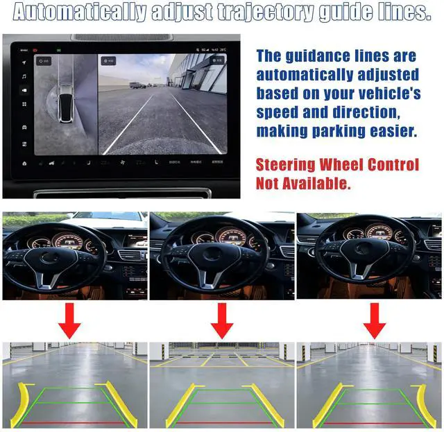Trajectory Guidance Featuring a newly upgraded chip, this backup camera clearly displays trajectory guidance lines without the need for any additional accessories. The guidance lines automatically adapt to the vehicle's direction of travel, providing a more intuitive view for reversing.. ^^ High-definition lens Equipped with a built-in 1054 sensor chip, it outputs 19201080 pixel high-definition images with excellent 0.01 lux performance, ensuring high-quality night vision imaging; the 170-degree wide-angle fisheye lens easily covers most of the vehicle's blind spots, perfectly meeting the visual requirements for daily reversing and driving. ^^ Product Features The lens of this rear camera can be rotated and adjusted directly.