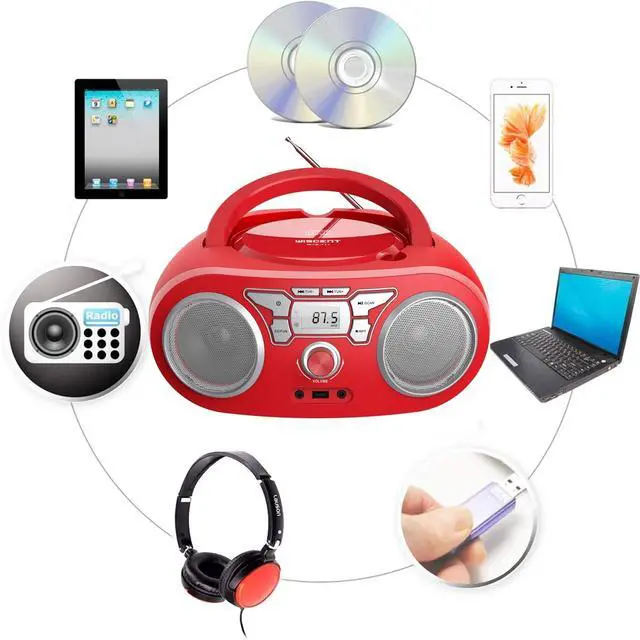 Bluetooth Speaker: CD Boombox with Bluetooth Wireless version supports all the latest Bluetooth devices. Built-in speakers 2 x 2W RMS output. (No transmitter function. ) ^^ USB & AUX-in &