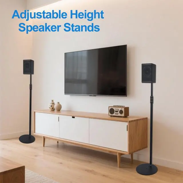 Bookshelf speaker stand compatible with Bose, Harmon Kardon, Roku, Polk, JBL, KEF, Klipsch, Sony, Samsung, Vizio, and other speakers. Stands can be free to move to your living room, bedroom, and study room.