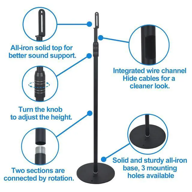 Note: No Compatible with Sonos. ^^ Hidden cable management for a neat and tidy visual effect. The upper part of the bracket pipe has a diameter of 0.8 inches, while the lower part has a diameter of 1 inch, making it easier to thread cables through the pipe. ^^ Speakers suitable for multiple