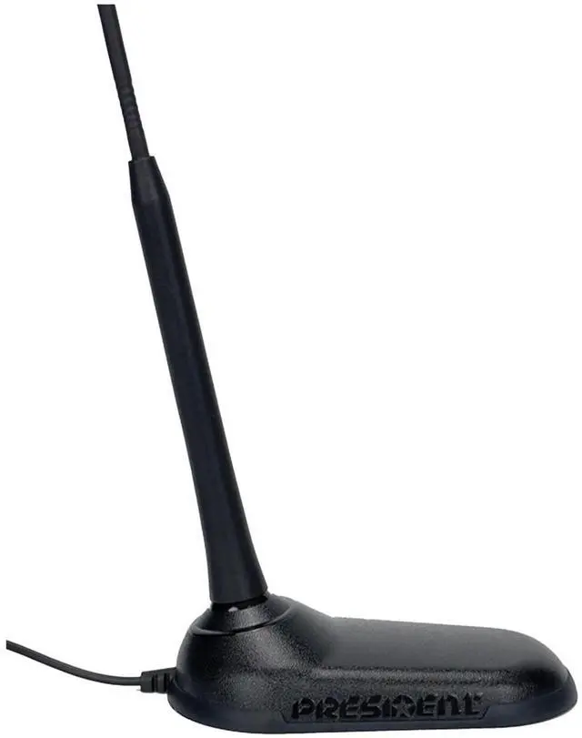 Compact and discreet, the PRESIDENT VIRGINIA-F antenna easily mounts on any vehicle without any drilling or holes. This low-profile antenna has a strong magnetic base, comes pre-tuned, is Weather Channel compatible, and guaranteed for 10 years against any manufacturing defects! Essentially, it is the same as the NEW VIRGINIA mount but does not have an adjustable-angle whip. It is recommended for installation on cars, vans, and light-duty trucks.