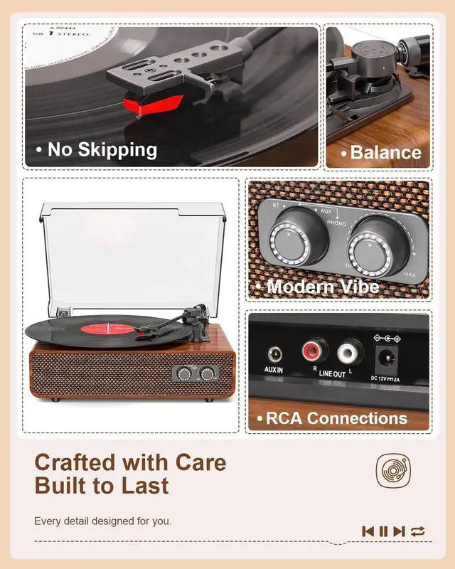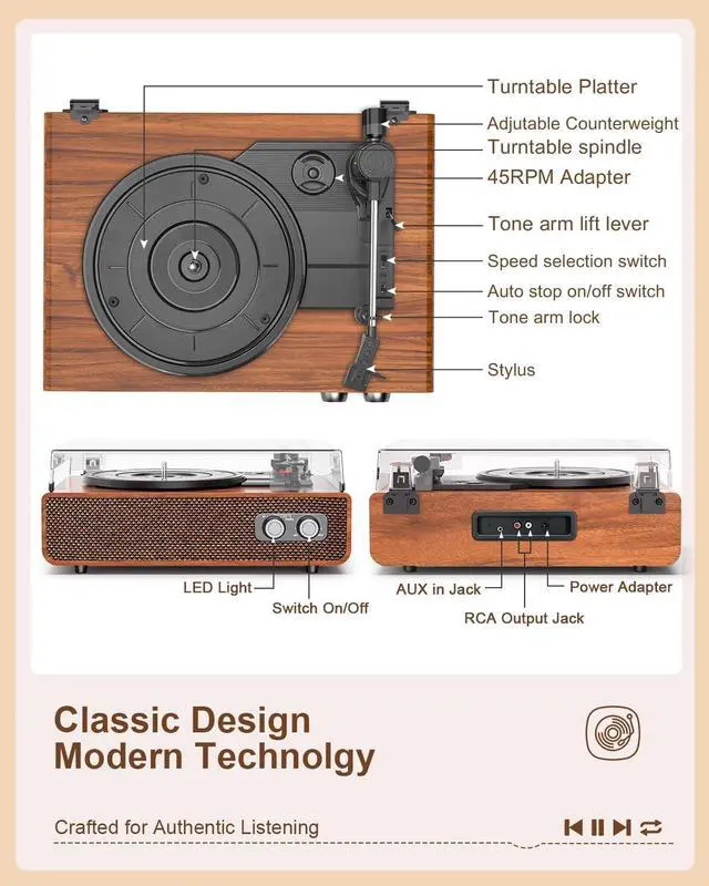 ^^ Timeless Wooden Design: The counterweight and anti-skipping design ensure your needle tracks perfectly, ensuring crystal-clear audio without distortion. This allows the serious collector to protect their investment and enjoy every album exactly as it was meant to be heard.