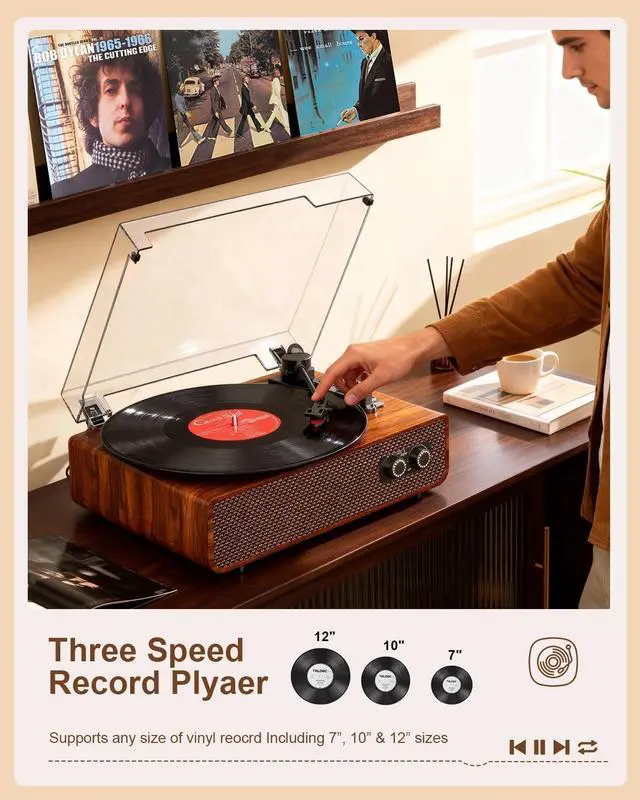 ^^ User-Friendly Controls: With intuitive knobs and simple connectivity, you can unbox, set up, and drop the needle in minutes. Its designed for both seasoned enthusiasts and those new to vinyl, offering a hassle-free path to rediscovering the joy of analog musi vibe.