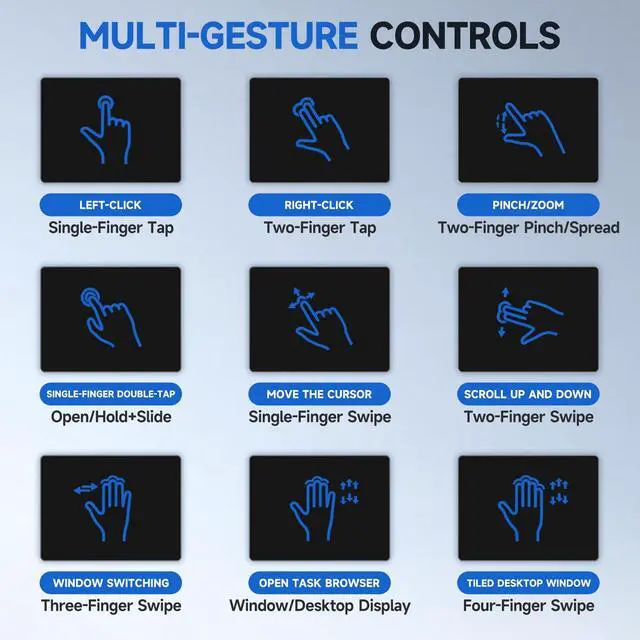 ^^ High-precision Multi-Touch Control: The touchpad is much smoother than a laptop touchpad and supports up to four-finger gestures, Effortlessly navigate with smoothly clicking on the screen, scrolling up and down the page, pinching to zoom in on a photo, and access advanced functions with three and four fingers. ^^ Sleek &