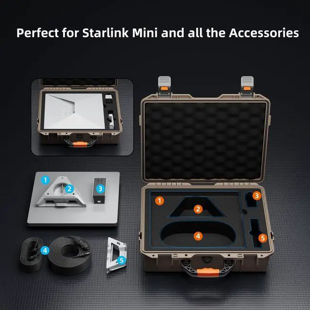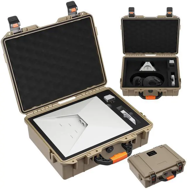 Total Waterproof & Weather-Resistant Protection: Featuring a robust hard shell and sealed rubber gaskets, this Starlink Mini case offers complete waterproofing for your Starlink Mini. This Starlink carrying case reliably safeguards your gear against rain, splashes, dust, and harsh outdoor conditions