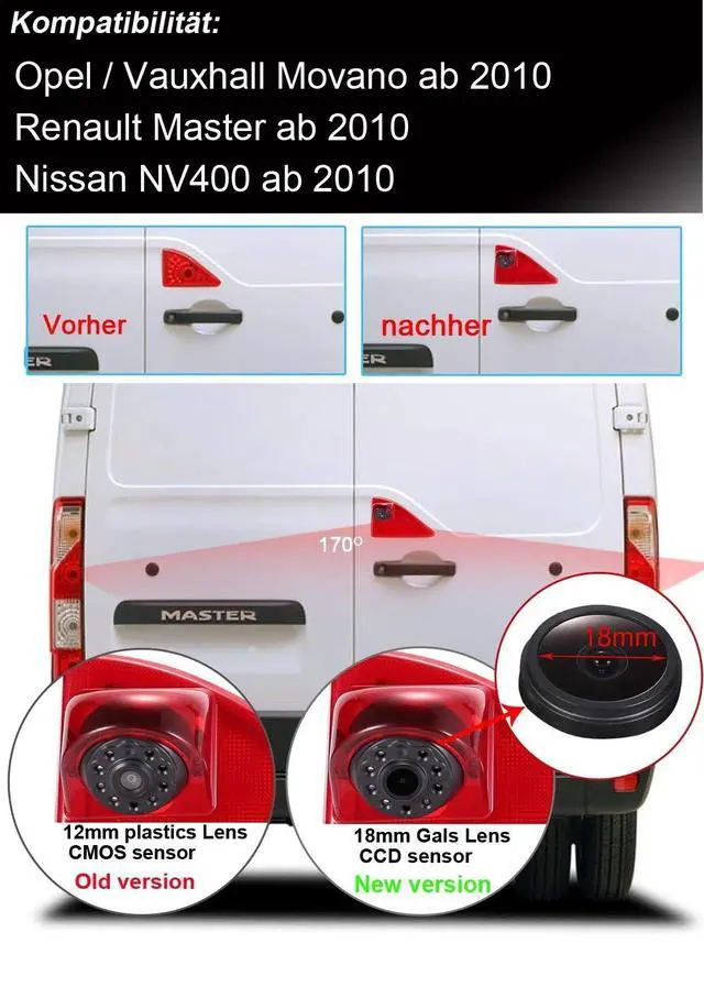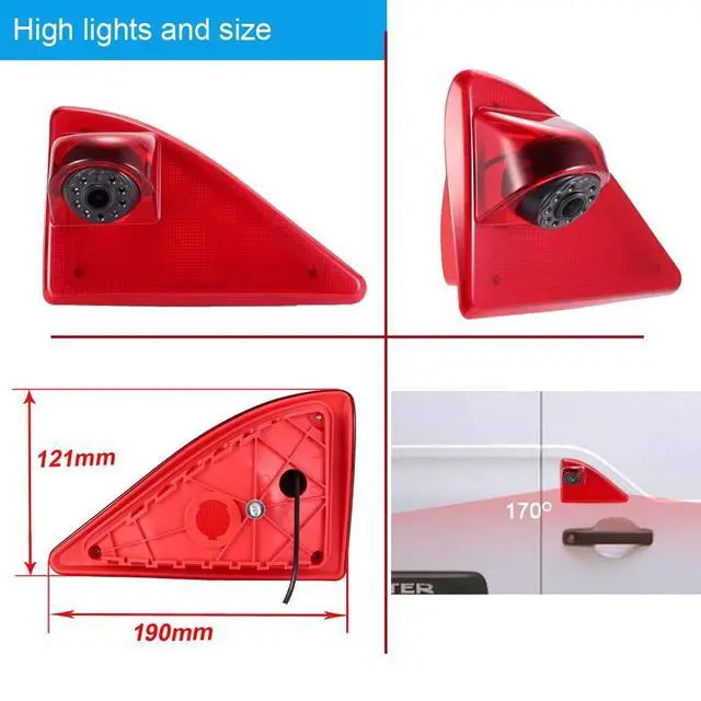Transporter van car roof brake light reversing camera HD night vision Waterproof replacement for the original brake lights. ^^ Integrated CCD sensor chip A new generation of high-performance intelligent chips with high stability and fast image processing speed, maximizing the reproduction of the real image. ^^ 170 wide-angle Lens With this 170 wide-angle reversing camera, you can see everything behind your car clearly and park your car quickly and safely. ^^ Easy to installConnect the power cable of the camera to your reversing light, positive to reversing light+, negative to reversing light - or ground.