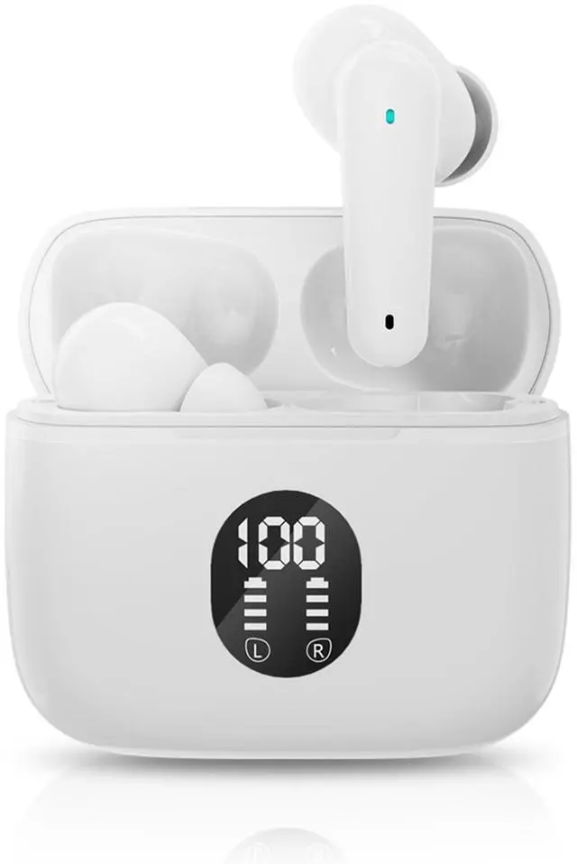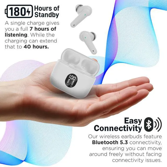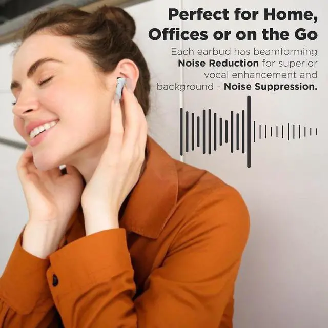 ^^ Comfortable and Sweatproof: These ultra-lightweight and ergonomic work earbuds feature silicone earwings for a snug fit. With an IPX5 sweatproof rating, these wireless buds are perfect for long workouts and daily commutes without discomfort.